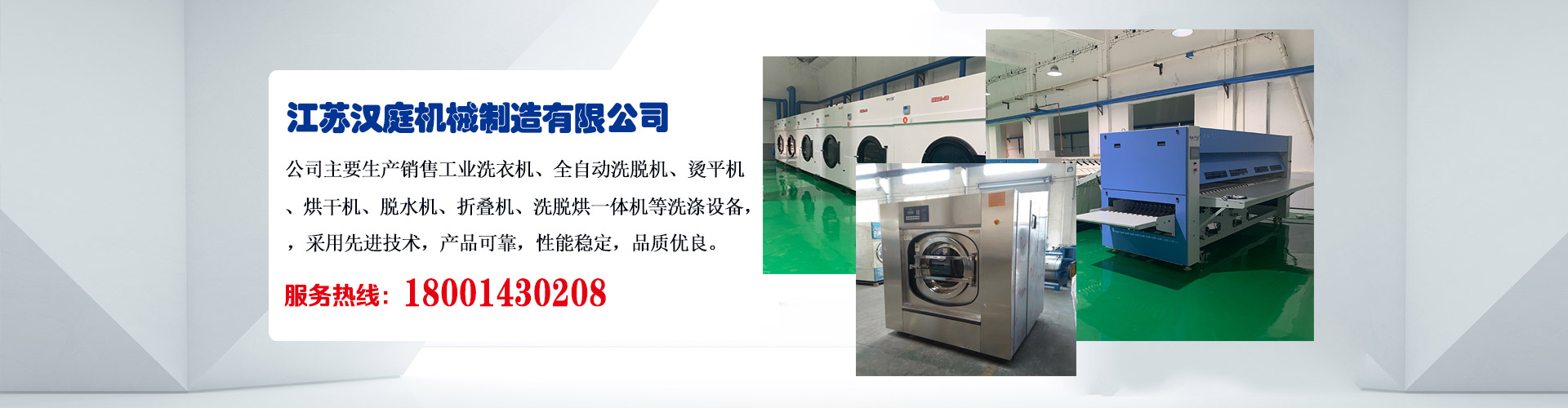 江蘇漢庭機(jī)械制造有限公司 位于長江三角洲地區(qū),是生產(chǎn)制造服裝洗滌機(jī)械,賓館、酒店等洗衣房設(shè)備的專業(yè)廠家。 江蘇漢庭機(jī)械制造有限公司從建廠至今已走過數(shù)個年頭,從剛開始的洗滌設(shè)備行業(yè)新秀企業(yè)一躍成為江蘇省泰州市會員企業(yè),公司現(xiàn)有員工234名,其中工程技術(shù)人員68名,各種加工設(shè)備131臺,具備車、銑、刨、磨、鈑金、焊接、機(jī)械和電器裝配等完善的加工條件,不僅能使各種設(shè)計(jì)成果迅速轉(zhuǎn)化為質(zhì)量優(yōu)秀的產(chǎn)品,而且能夠有效的保證產(chǎn)品......